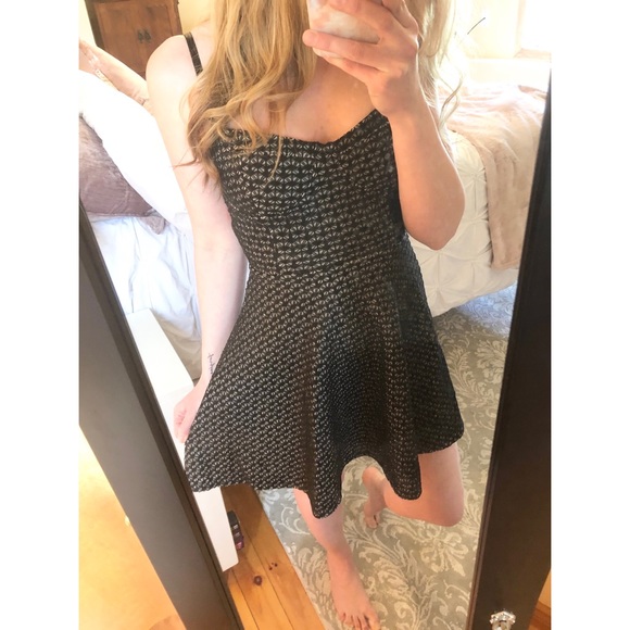 The dress is so flirty and cute! Awesome cut out/open back and so fun with this flower/lace detail!
