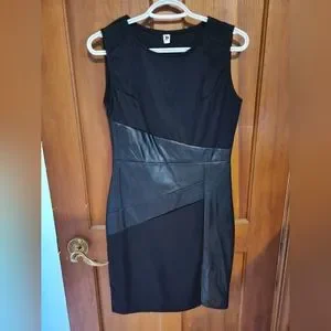 Black dress with faux leather waist decor Size M Approx 38" long. Never worn