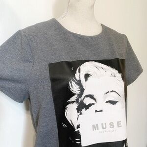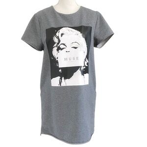 DRESS FORUM LOS ANGELES GREY MARILYN MONROE GRAPHIC SHORT SLEEVE SHIFT MINI DRESS - This is a muse t-shirt dress - Crafted from a soft cotton blend, this graphic pick flaunts your style without sacrificing comfort in neutral black white graphic print and grey cotton fabric- back exposed zipper fastening - stretch - unlined - inseam pockets- round neckline. Comfy boyfriend with a sexy feminist touch. Casual, can be worn alone with sneakers, opaque stocking or leggings.