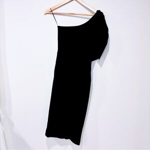 DRESS THE POPULATION Black one shoulder Tiffany dress