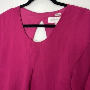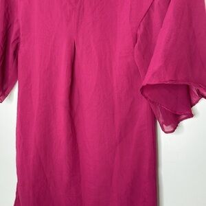 In great condition. 100% polyester made in USA. Sheer flowy sleeve. Completely lined. Cut out detail on the back. Measure lay flat: shoulder 19'' bust 16,5'' waist 16'' hips 17,5'' length 31,5''.