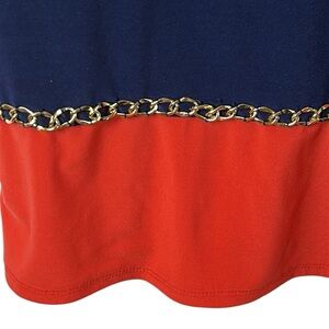DRESS sz 12, colorblock ,gold colored chain detail , heavy ,fitted,MSK,Macy’s