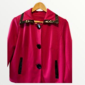 DRESSBARN Pink Crop Blazer Faux Patent LeatherTrim