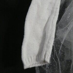 Adorable knit top dress featuring a delicate cable knit design on a white bodice, paired with a playful grey tulle skirt