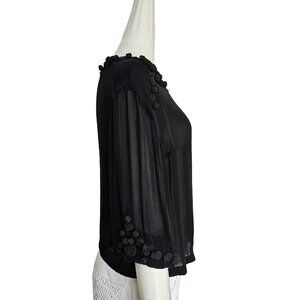 DRIES VAN NOTEN BLACK SHEER BLOUSE WITH BUTTON APPLIQUES (S)
