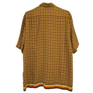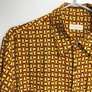 DRIES VAN NOTEN Retro Geometric Short Sleeve Orange Brown Button Down Shirt L