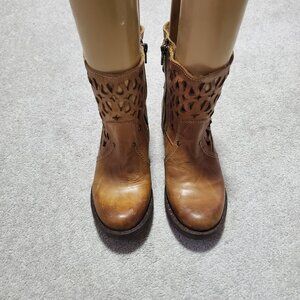 DROMEDARIS Kenza Ankle Boots Booties Leather Cut Out Rustic Brown Women 38EU 7US