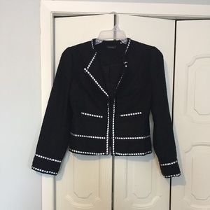 DStudio blazer/suit jacket black w white ribbon trim, US 6, like new.