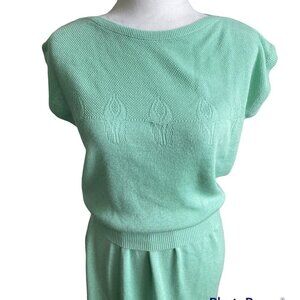 DUET Vintage 2 Piece Knit Skirt Set Mint Green Pastel US S/M
