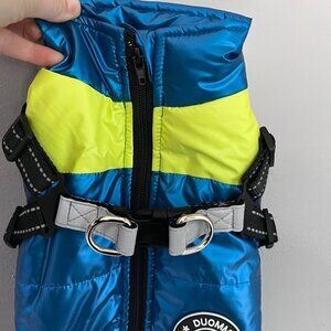 DUOMM Metallic Blue Green Dog Puffer Winter Jacket Size Medium Reflective