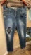 Good preowned condition — two studs missing from the distressed thigh patch (see photos). Otherwise no major flaws.