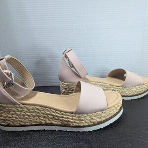 Elevate your style with these beautiful nude espadrilles by DV By Dolce Vita. Perfect for any occasion, whether it's a casual day out or a party, these sandals feature an open toe design and a comfortable medium heel height.
