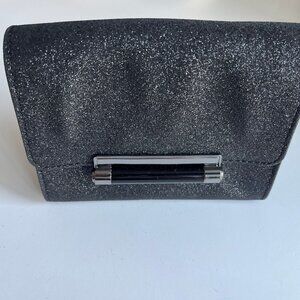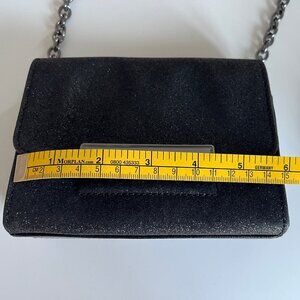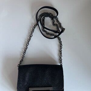 Shimmery black crossbody with chain and leather strap. The bag is small (see photos for measurement) and the strap is 44" long. Excellent condition, only used a few times.