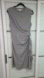 Pre-owned condition with no visible flaw. Velcro closure belt. Side ruffle Grey midi dress.