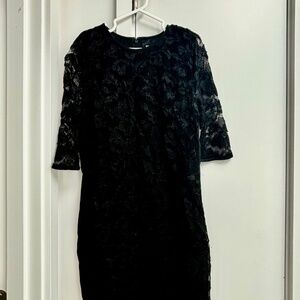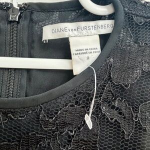 Elegant DVF lace back dress with silk side panels, 3/4 sleeves (a bit shorter than shown in the photo)