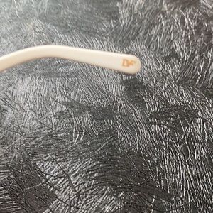 Worn twice DVF white and rose gold sunglasses. Fashionable & current
