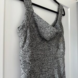 DVF black & white wool tweed midi dress - size 8 (Medium)