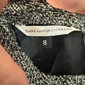DVF black & white wool tweed midi dress - size 8 (Medium)
