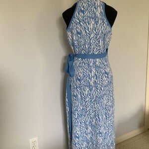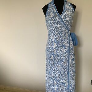 💙 DVF Collared Sleeveless Knit Wrap Dress – Blue & White Pattern - size 6, NWT
