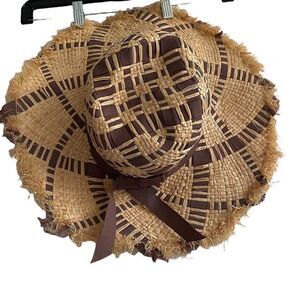 D&Y Straw Woven Lightweight Floppy Sun Hat Tan Brown One Size