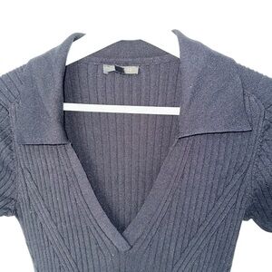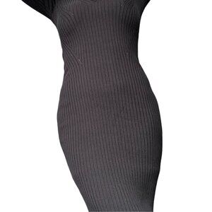DYNAMITE BLACK RIBBED MAXI DRESS WITH V-NECK, COLLAR & SIDE SLIT | SIZE SMALL