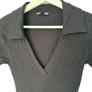 DYNAMITE BLACK RIBBED MAXI DRESS WITH V-NECK, COLLAR & SIDE SLIT | SIZE SMALL