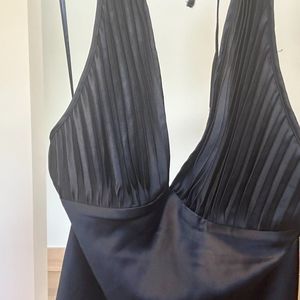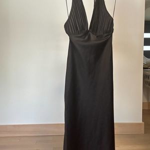 DYNAMITE BNWT BLACK HALTER SATIN DRESS WITH SLIT