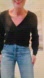 This flattering and stretchy black Dynamite sweater is perfect for achieving that chic, Viscose-inspired look. Featuring a stylish crisscross V-neck design and a slightly cropped length, it’s a versatile addition to any wardrobe.