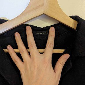 This blouse is super beautiful and has served me so well! So easy to throw on with jeans and look cute for a date night or brunch with friends. Listed as an XS, I find Dynamite runs large and this fits me well as a US 6.