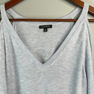 DYNAMITE Cold Shoulder Cutout Sweater Baby Blue Ribbed V-Neck Lightweight Size M