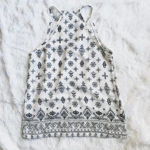 DYNAMITE Geometric Pattern Tank Top Pompom Collar