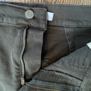 Gorgeous olive green mini skirt. Stretch material. Two pockets in the front, and two in the back. Zipper and button closure. Size XS. Excellent condition.