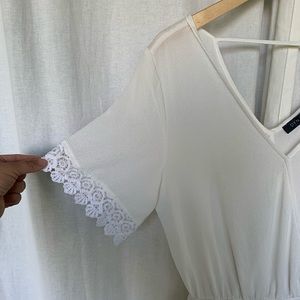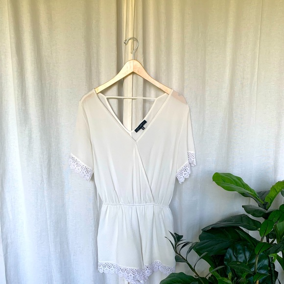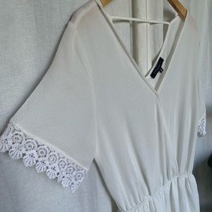 ๐๐ฒ๐๐ฐ๐ฟ๐ถ๐ฝ๐๐ถ๐ผ๐ป: White Romper with Lace ends