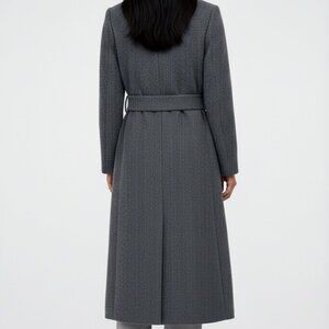 • Features: Oversize design, notched lapel collar, self-tie belt closure, side pockets.