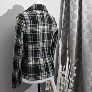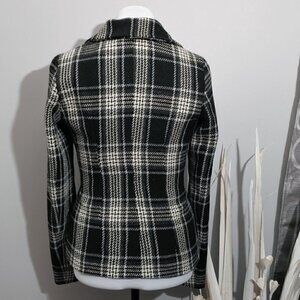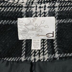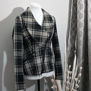 DYNAMITE Black, gray and white, plaid, wool blend, asymmetrical front zipper, 2 front pockets, all lined, jacket, size XS. Great pre-loved condition, no stretch in the fabric. See all measurements on pictures. Please don't hesitate to ask if you have any questions!