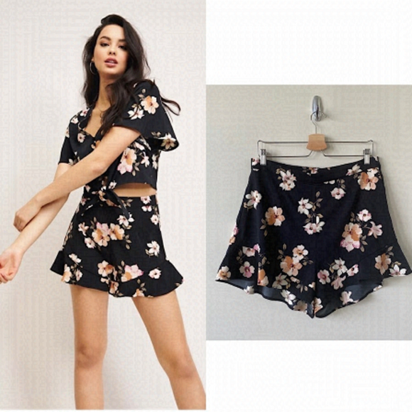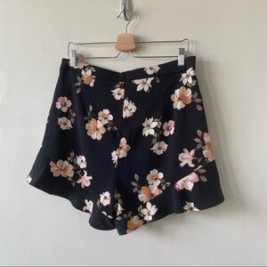 DYNAMITE-HIGH Rise Ruffle Hem Floral Shorts (Size:Large)