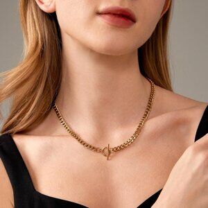 ⚡Dabovos Gold Chunky Necklace 18K Plated Toggle Clasp Cuban Snake Chain Choker