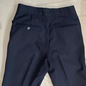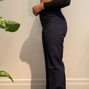 Navy blue tailored pants by Daché with details on the front pockets