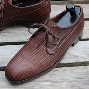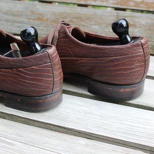EUC. Professionally cleaned and conditioned, the uppers have exquisite exotic texture, with no cracks or scratches. Original stacked leather heels and Goodyear welted leather soles have plenty of life remaining and can be re-soled by any cobbler, but they also have rubber sole protectors, so these will last years.