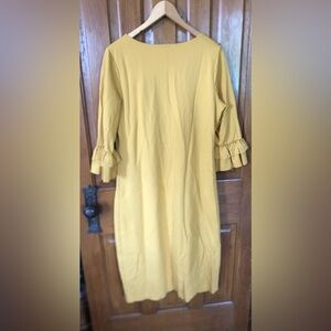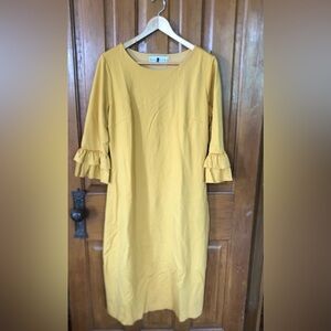 Embrace effortless style with this Dainty Jewells dress, designed for both casual and work settings. This dress features a flattering bateau neckline and elegant 3/4 bell sleeves, offering a sophisticated yet relaxed look. The vibrant yellow hue adds a cheerful touch to your wardrobe, making it a versatile choice for various occasions.