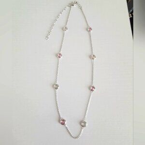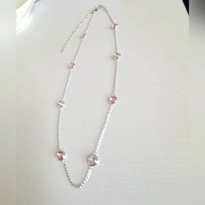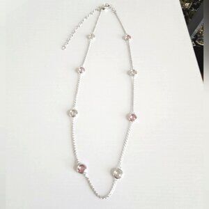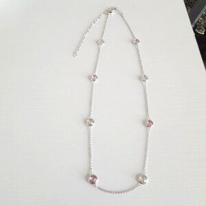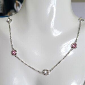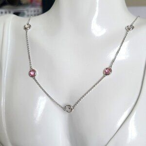 Dainty Sterling Silver Elegant Feminine Pink Round Crystal Chain Necklace