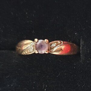 Dainty Vintage 10K Gold Lavender Sapphire & Diamond Nature-Inspired Leaf Ring