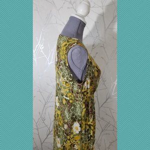 Daiquiri Artsy Green Floral Crinkle Cinch Empire Waist Long Shift Dress