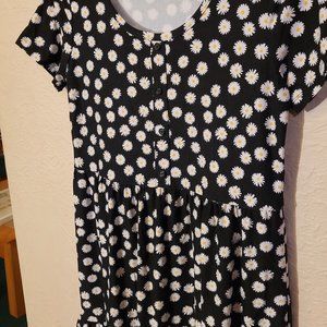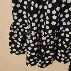 Super soft daisy print summer dress. Features two tier gathered skirt, hem hits about mid thigh.