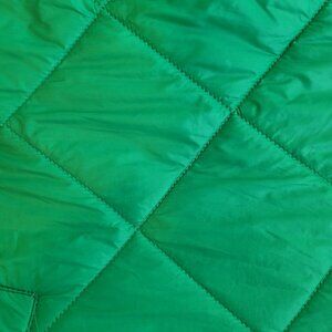 Bright kelly green puffer jacket, perfect for fall-to-winter transition. Features include easy packability, snap front closure, and practical pockets.