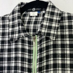 In great condition. Fun green metallic zipper on the middle. Plaid print. Polo shirt style. Measure lay flat: shoulder 15'' bust 20,5'' waist 20'' hips 20,5'' length 33,5''.