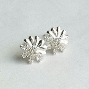 Modernist Flower CZ Daisy Stud Earrings in Sterling Silver