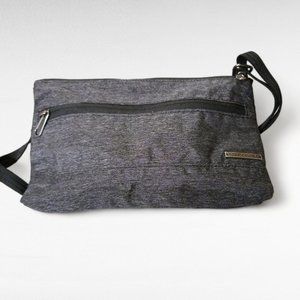 Approximate measurements 10.5 x 7 x 1" Vintage Blue 300D Recycled Polyester Soft body crossbody bag