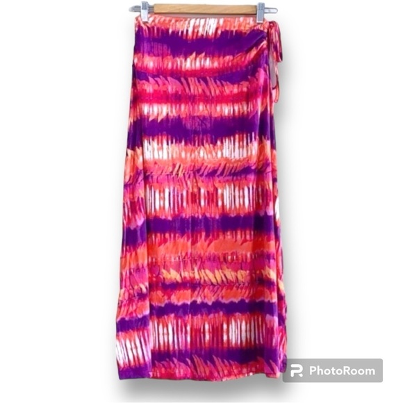 Make a statement in this vibrant convertible dress! With a strapless knot-front design and dreamy tie-dye hues of purple, pink, and orange, it’s perfect for summer days or beach getaways. Dress it down with sandals or elevate it with wedges, boho chic made easy!