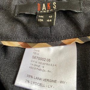 Classically styled Daks wool/lyocell grey pants. Black accent trim on the waistband. Beautiful ightweight wool, never worn.